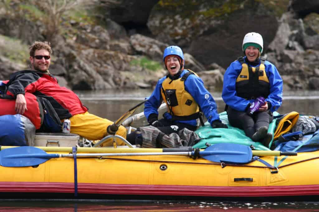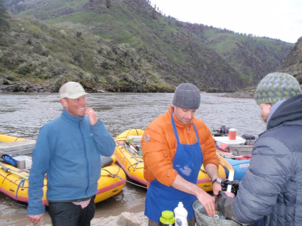 Before my first multi-day trip on the Lower Salmon, I was enthusiastic about backpacking, hiking, snowboarding, camping, and many outdoor pursuits. If you’ve ever been backpacking, you know it offers a lot of amazing solitude, scenery, and exceptional experiences, but it definitely lacks in food quality and quantity. I was so pleasantly surprised to realize that on a multi-day rafting trip, we can bring a lot of camping luxuries similar to car camping, but still retain the quiet privacy of being far away from any other campers. Pushing almost 20 years later, I still remember the incredible breakfast of hot oatmeal with fresh berries drizzled with warm coconut milk, mmm-mmm good!